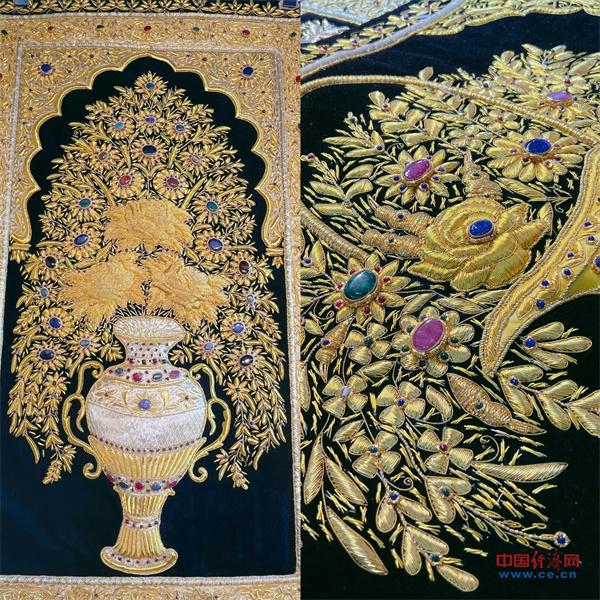 Iranian tapestries inlaid with various gemstones [Photo/Wu Siya]