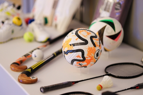 Pakistani sports goods displayed at the reception of the 86th Pakistan National Day. [Photo provided to CEN]