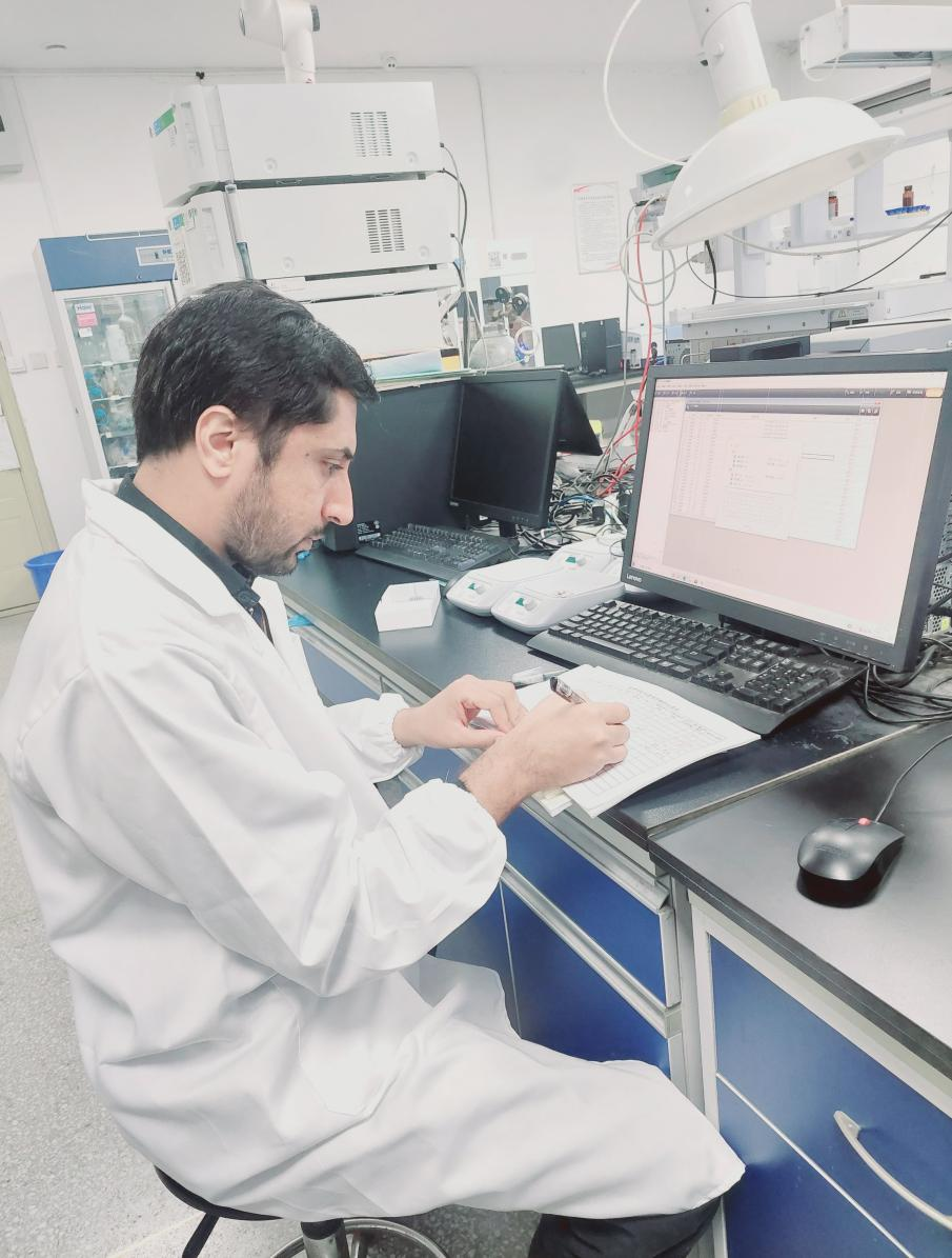 Tufail Baloch in a lab at university in China, photo provided to CEN
