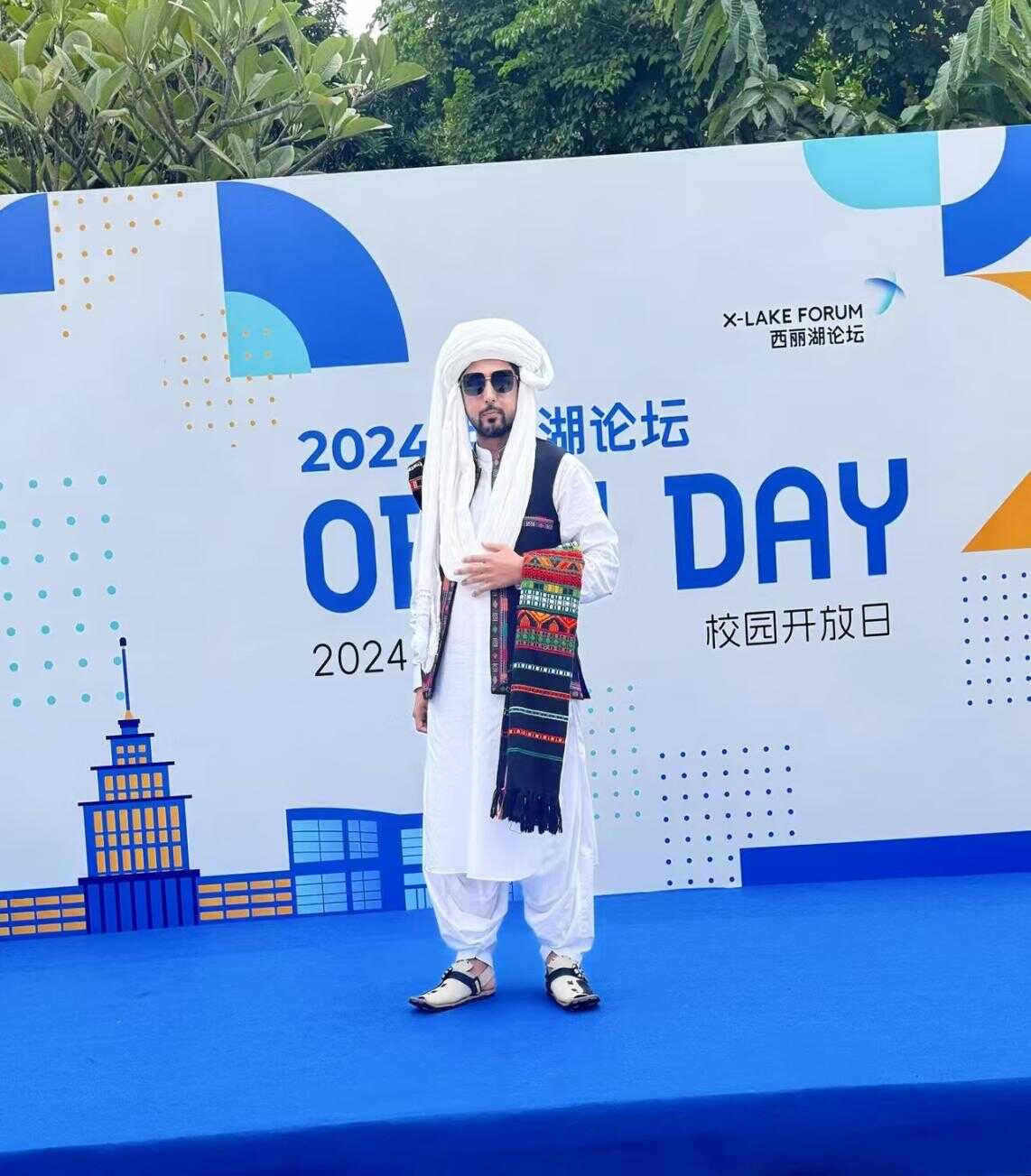 Tufail showcases traditional Baloch attire at a public cultural event in China., photo provided to CEN
