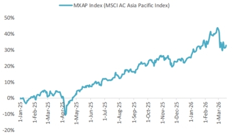 The MSCI Asia Pacific Index has risen more than 32.9% year-to-date, outperforming both the S&P 500, which is down 0.2% for the year, and the technology-heavy Nasdaq 100, which has shed around 2%. Graphic from Ktrade Securities.