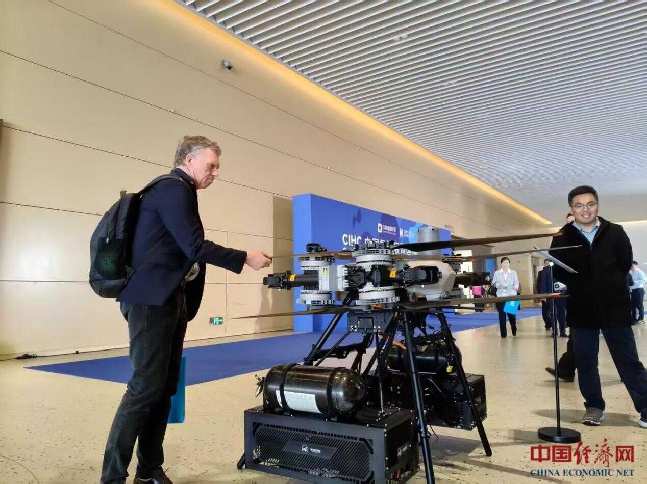 Hydrogen-powered UAV on display at the 16th Clean Energy Expo China (CEEC) held in Beijing on Mar. 25-27, 2026. [Photo/Wang Kai]