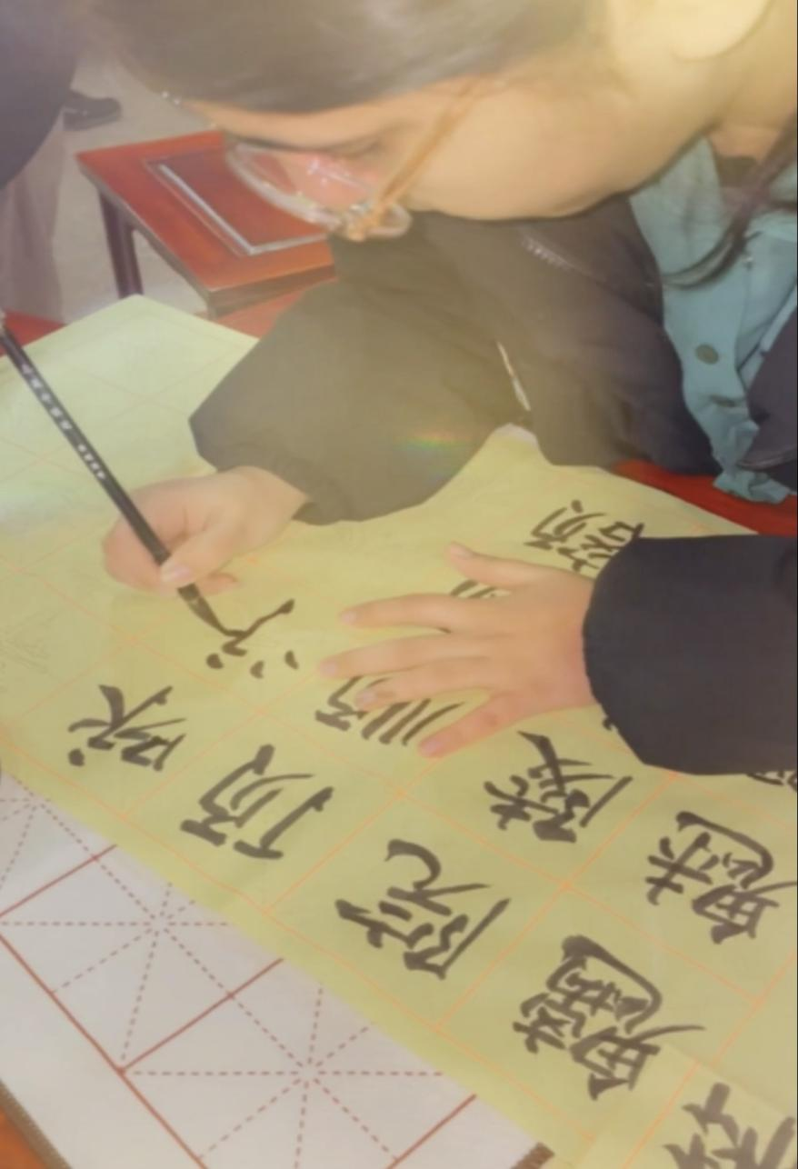 Mahpara Baloch practices Chinese calligraphy. [Photo provided to CEN]