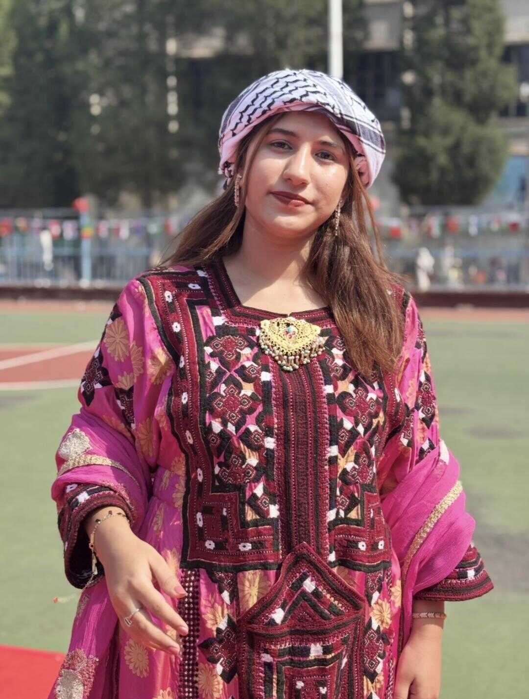 Mahpara Baloch wears traditional dress in China. [Photo provided to CEN]