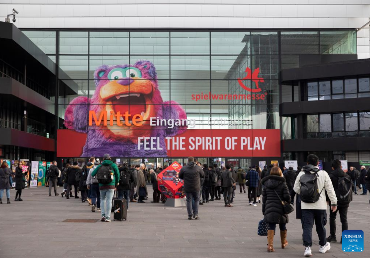 People visit the Nuremberg International Toy Fair (Spielwarenmesse) in Nuremberg, Germany, Jan. 30, 2024. As a leading trade fair for toys, hobbies and leisure, the Spielwarenmesse kicked off here on Tuesday with over 2,100 participating companies from around the world. (Xinhua/Zhang Fan)