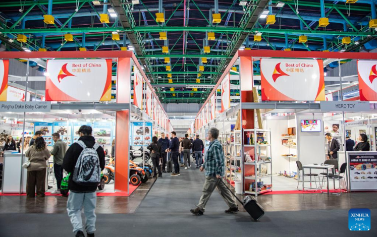 People visit the Best of China joint booth at the Nuremberg International Toy Fair (Spielwarenmesse) in Nuremberg, Germany, Jan. 30, 2024. As a leading trade fair for toys, hobbies and leisure, the Spielwarenmesse kicked off here on Tuesday with over 2,100 participating companies from around the world. (Xinhua/Zhang Fan)