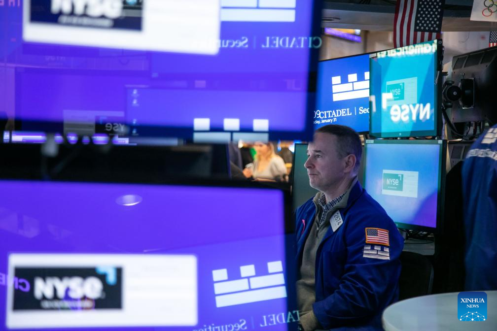 NEW YORK, Jan. 31 (Xinhua) -- U.S. stocks ended lower on Wednesday, on the central bank's anticipated decision to hold rates steady, and Fed Chair Jerome Powell's hint that the central bank would not begin cutting rates at its next meeting in March.