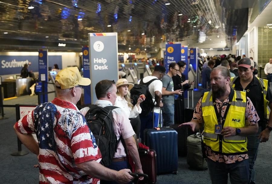 Passengers wait at Milwaukee Mitchell International Airport in Milwaukee, Wisconsin, the United States, on July 19, 2024. (Xinhua/Wu Xiaoling)
