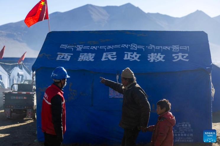 LHASA, Jan. 12 (Xinhua) -- On Sunday morning, at a newly-built resettlement site in the earthquake-struck county of Dinggye, southwest China's Xizang Autonomous Region, children were doing their homework inside warm makeshift houses, undisturbed by occasional jolts of aftershocks and the chilling winds howling through the Himalayas.
