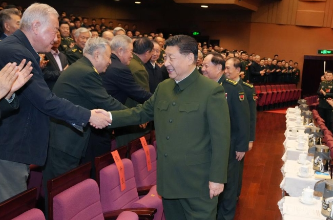 Xi joined the veterans to their warm applause, asking them about their health and living conditions. They looked back together on the extraordinary journey of the Party, the country and the military over the past year and major achievements.