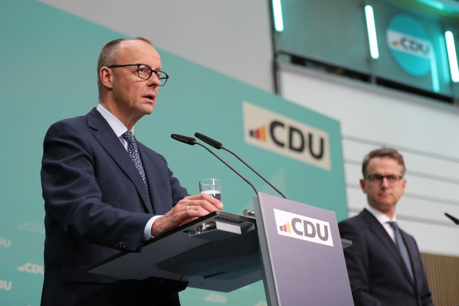 BERLIN, Feb. 25 (Xinhua) -- Preliminary results show that Germany's conservative bloc, the Christian Democratic Union (CDU) and Christian Social Union (CSU), has emerged as the winner of the federal election, reclaiming its position as the largest force in parliament and signaling a major political shift.