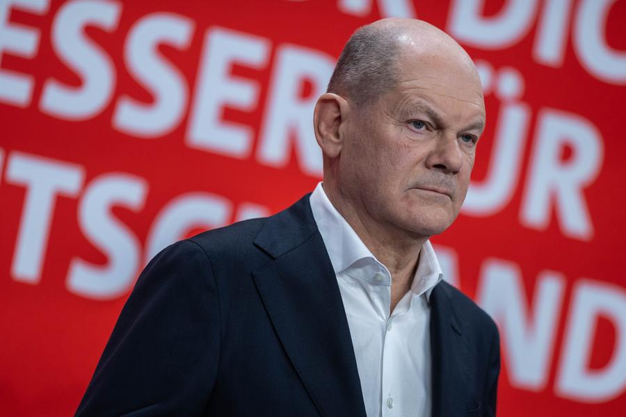 German Chancellor Olaf Scholz attends a campaign event at the headquarters of the Social Democratic Party (SPD) in Berlin, Germany, Feb. 23, 2025. (Photo by Ulrich Hufnagel/Xinhua)