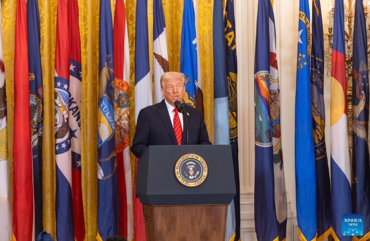 U.S. President Donald Trump speaks before signing an executive order at the White House in Washington, D.C., the United States, on March 20, 2025. Trump on Thursday signed an executive order to formally begin the process of dismantling the Education Department, saying that his administration is returning education back to the states. (Xinhua/Hu Yousong)