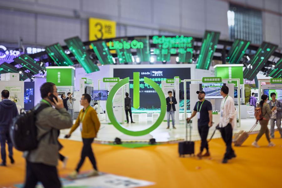 This photo taken on Nov. 9, 2024 shows the booth of Schneider Electric during the 7th China International Import Expo in east China's Shanghai. (Xinhua/Wang Xiang)