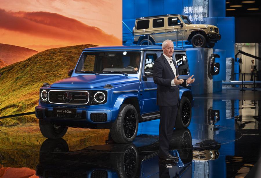 A Mercedes-Benz G-Class electric off-road vehicle is pictured during an unveiling ceremony at the 2024 Beijing International Automotive Exhibition in Beijing, capital of China, April 25, 2024. (Xinhua/Cai Yang)