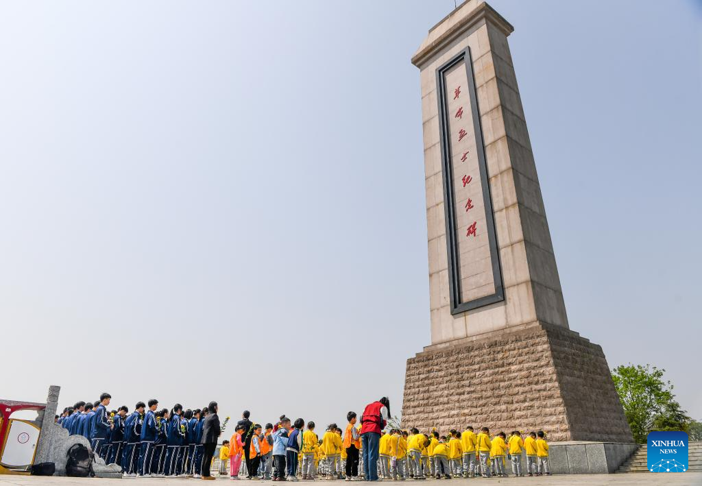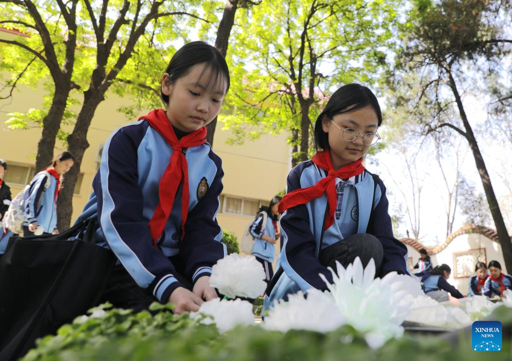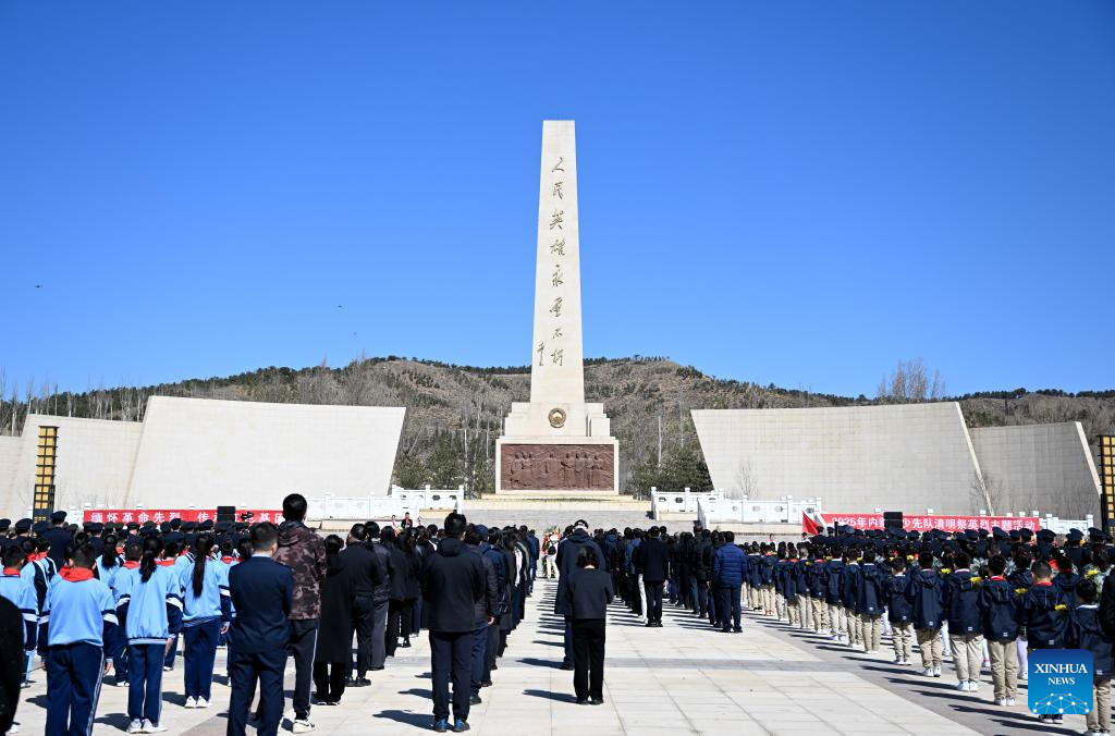 Students pay tribute to martyrs at a martyrs' cemetery in Jiyuan City of central China's Henan Province, April 2, 2025. People across the country attend tomb-sweeping activities to pay tribute to martyrs ahead of the Qingming Festival, which falls on April 4 this year. (Photo by Duan Erping/Xinhua)