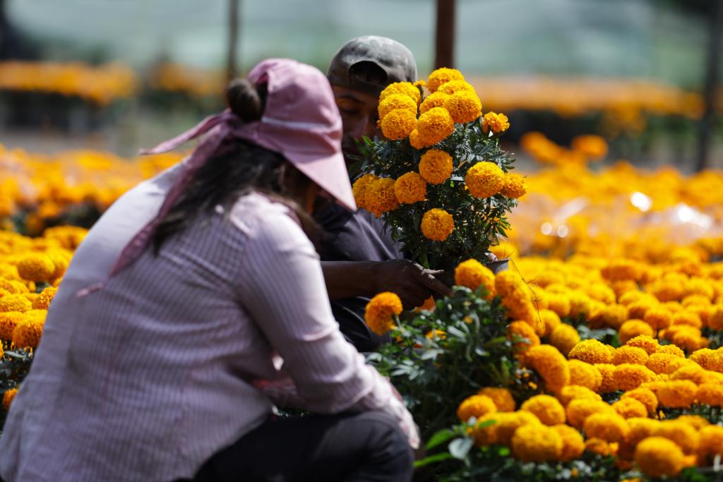Farmers harvest marigold flowers, a traditional Mexican offering for the Day of the Dead, in Xochimilco, south of Mexico City, capital of Mexico, Oct. 29, 2024. (Photo by Francisco Canedo/Xinhua)