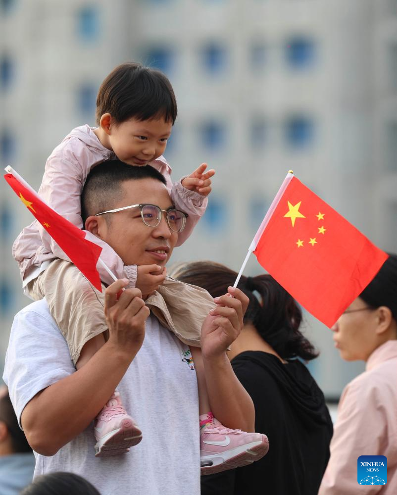 People attend a flag-raising ceremony in Xi'an, northwest China's Shaanxi Province, Oct. 1, 2025. The 76th anniversary of the founding of the People's Republic of China was observed on Wednesday in various ways across the country. (Xinhua/Li Yibo)