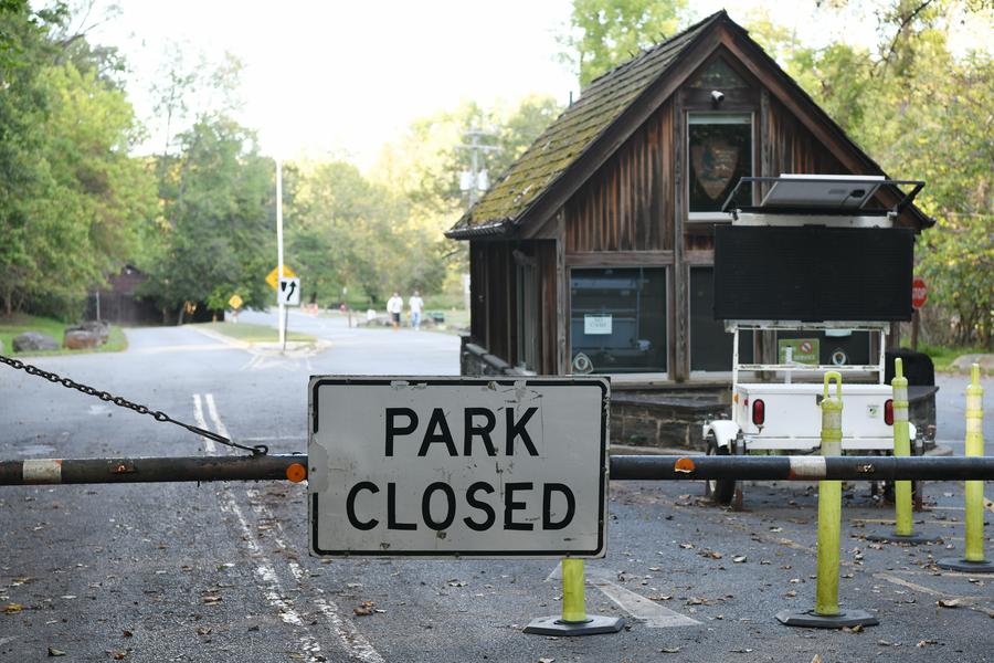 The road to the visitor center of Great Falls Park is closed in Fairfax County, Virginia, the United States, on Oct. 3, 2025. (Xinhua/Li Rui)