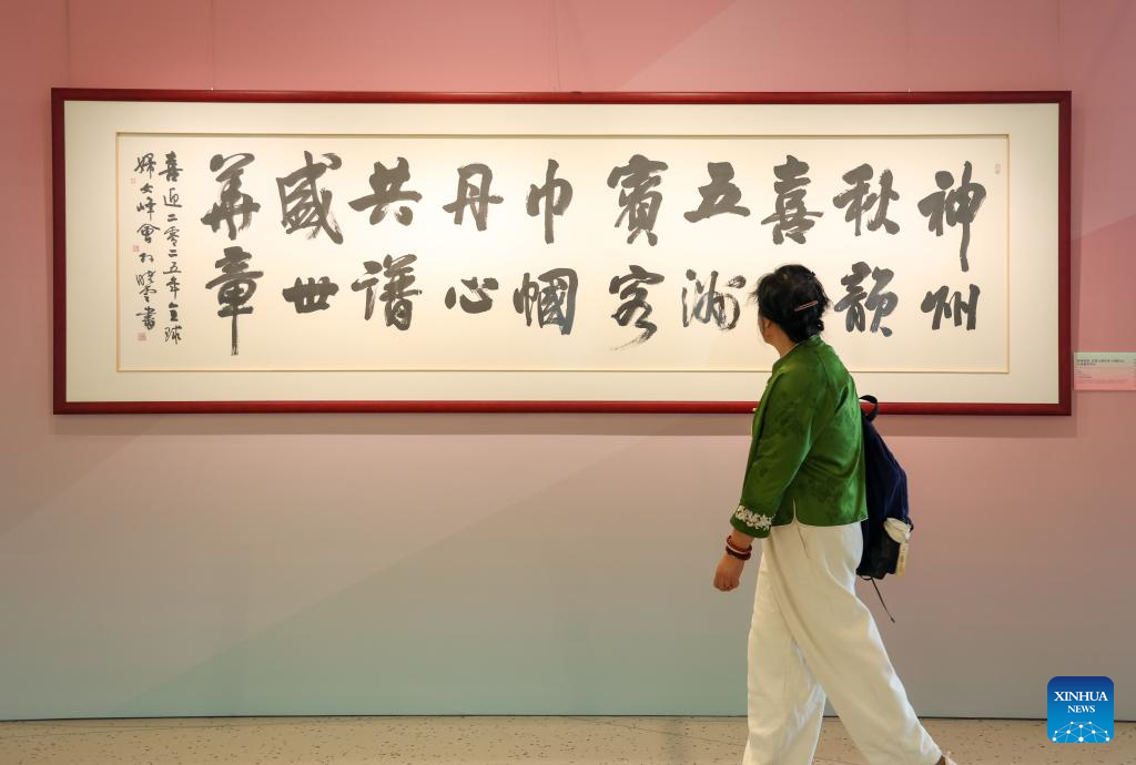 A woman views an exhibit during "Heritage Blossoms, Women Shine", a special exhibition celebrating the Global Leaders' Meeting on Women in Beijing, capital of China, Oct. 13, 2025. The Global Leaders' Meeting on Women was held in Beijing on Monday. (Xinhua/Liang Xu)