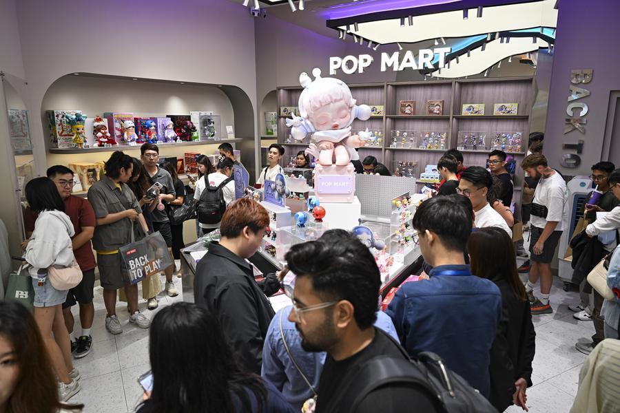 Customers visit a Pop Mart store in Kuala Lumpur, Malaysia, June 18, 2025. (Xinhua/Cheng Yiheng)