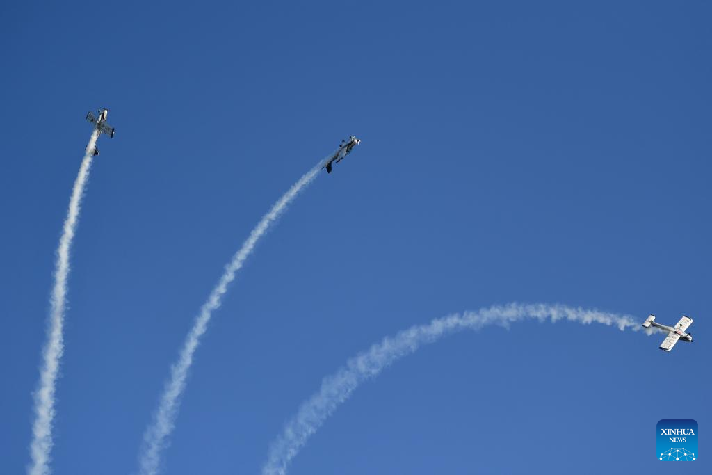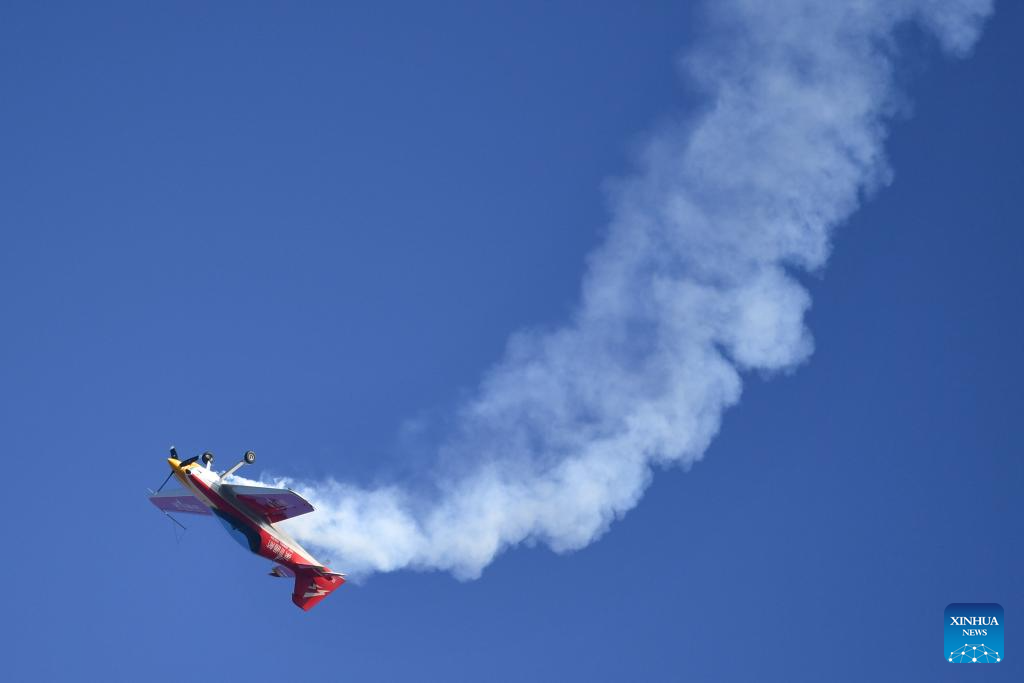 This photo taken on Nov. 21, 2025 shows an air show during the 2025 Hunan International General Aviation and Low Altitude Economy Industry Expo at the Lusong Airport of Zhuzhou City, central China's Hunan Province. The expo comprises a static exhibition at the Changsha International Convention and Exhibition Center in Changsha and an air show at the Lusong Airport of Zhuzhou City, both in central China's Hunan Province. (Xinhua/Chen Zhenhai)