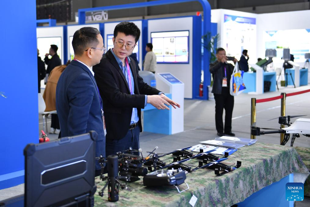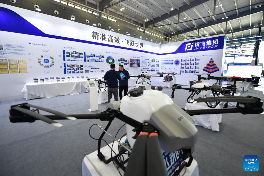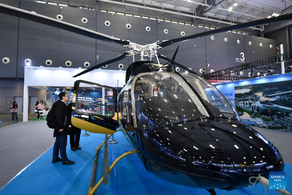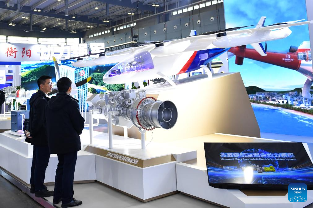 People visit an exhibition during the 2025 Hunan International General Aviation and Low Altitude Economy Industry Expo at the Changsha International Convention and Exhibition Center in Changsha, central China's Hunan Province, Nov. 21, 2025. The expo comprises a static exhibition at the Changsha International Convention and Exhibition Center in Changsha and an air show at the Lusong Airport of Zhuzhou City, both in central China's Hunan Province. (Xinhua/Chen Zhenhai)