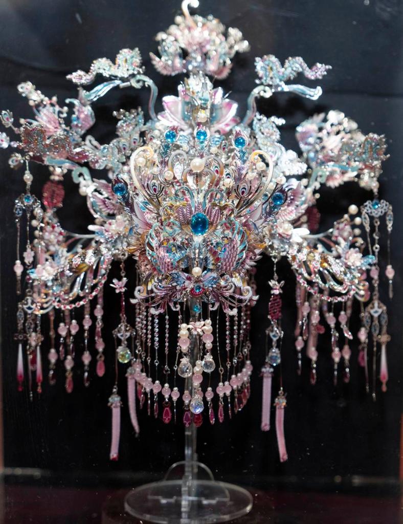 This photo taken on Nov. 21, 2025 shows a phoenix coronet at an exhibition held at the Sensory Experience Gallery of the Palace Museum in Beijing, capital of China. (Xinhua/Cai Yang)