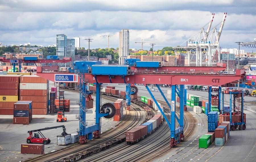 This photo taken on May 28, 2025 shows a view of the Container Terminal Tollerort in Hamburg, Germany. (Xinhua/Zhang Fan)