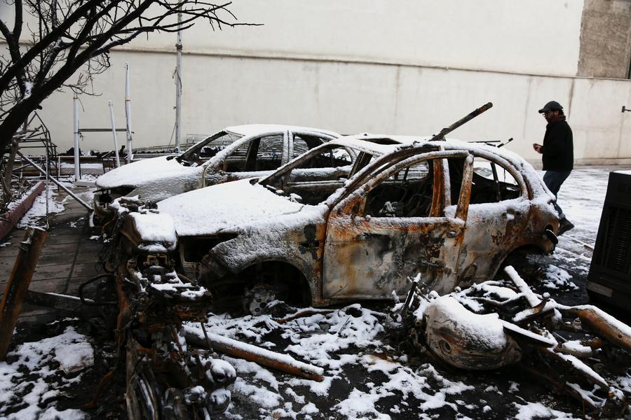 Vehicles damaged during the recent unrest are pictured in Tehran, Iran, Jan. 21, 2026. (Xinhua/Shadati)