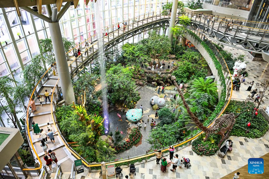 Customers visit a shopping mall in Liangjiang New Area, southwest China's Chongqing Municipality, June 7, 2025. The combined economic output of southwest China's Sichuan Province and Chongqing Municipality has exceeded 10 trillion yuan (about 1.44 trillion U.S. dollar) in 2025, accounting for approximately 7.2 percent of the national total. (Xinhua/Wang Quanchao)