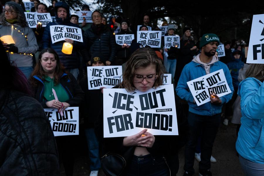 People attend a candlelight vigil held for Alex Pretti in San Francisco, California, the United States, on Jan. 25, 2026. A Minnesota resident was fatally shot by federal law enforcement agents on Saturday. (Photo by Ziyu Julian Zhu/Xinhua)