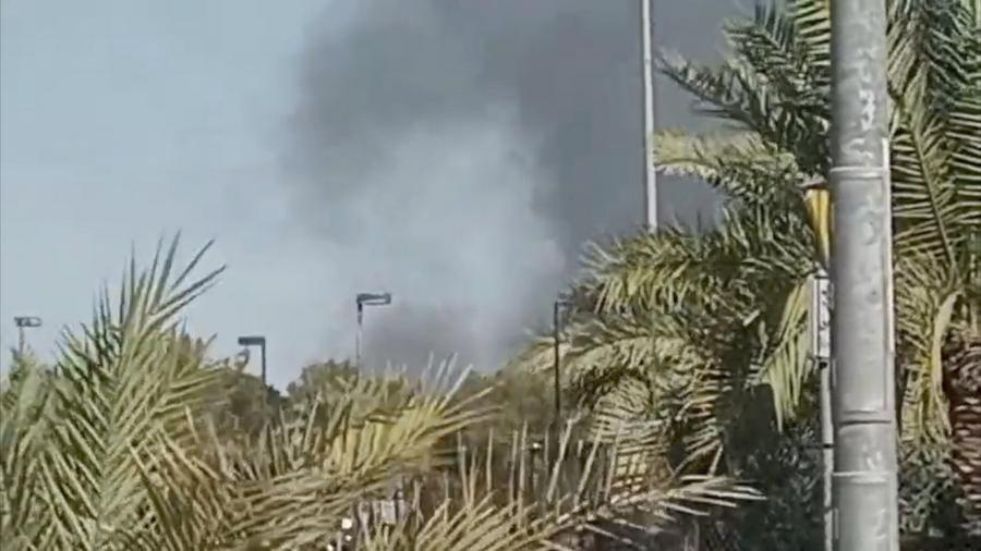 This screenshot from a video clip taken with a mobile phone shows smoke billowing from an area near the U.S. Embassy in Kuwait's Hawalli Governorate, March 2, 2026. (Xinhua)