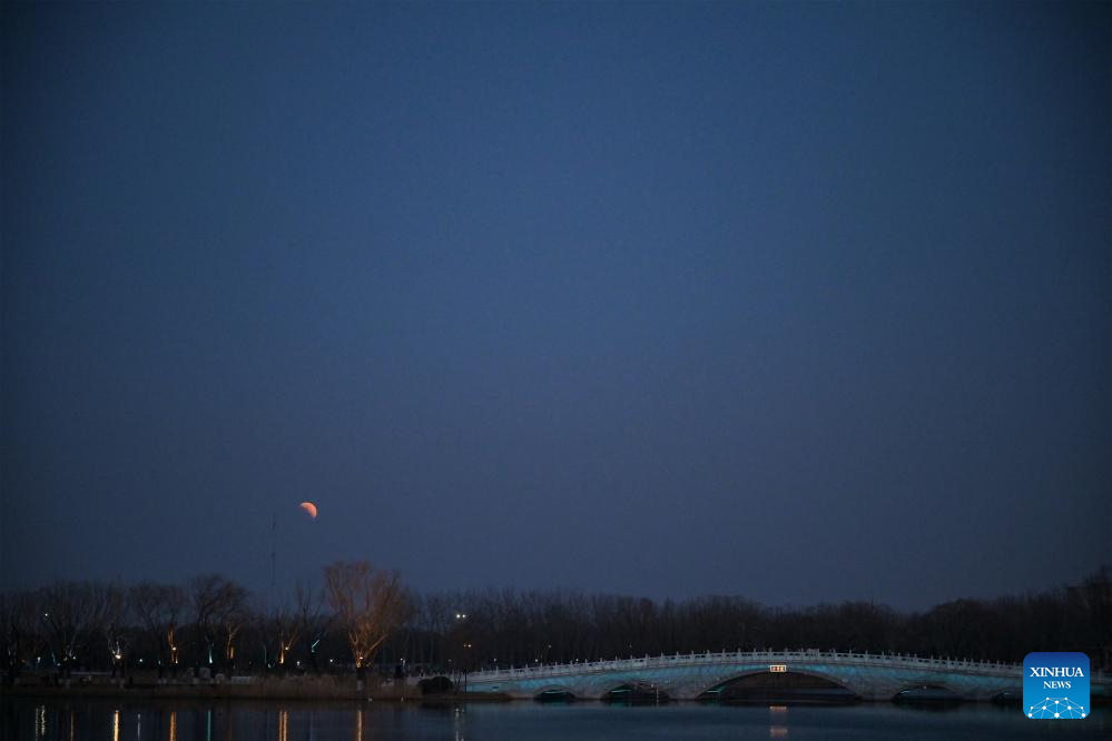 The moon is seen during a total lunar eclipse over Beijing, capital of China, March 3, 2026. Tuesday marked the Lantern Festival, which falls on the 15th day of the first month of the Chinese lunar calendar. This year's festival coincided with a total lunar eclipse. (Xinhua/Wang Ying)