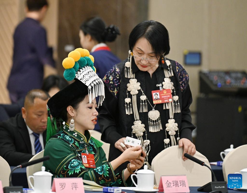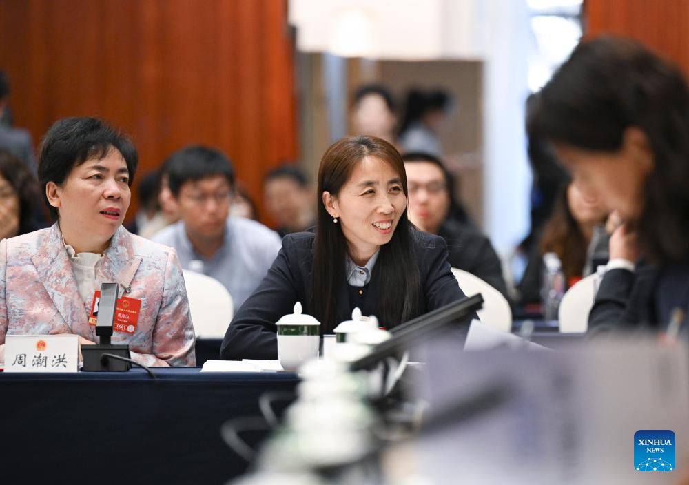 Jin Ruirui, a deputy to the 14th National People's Congress (NPC), attends a group deliberation at the fourth session of the 14th NPC in Beijing, capital of China, March 6, 2026.