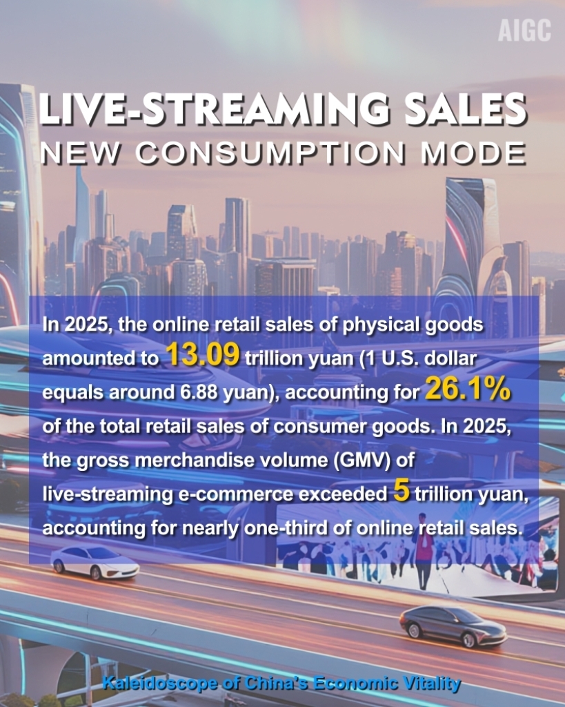 In 2025, the online retail sales of physical goods amounted to 13.09 trillion yuan (1 U.S. dollar equals around 6.88 yuan), accounting for 26.1% of the total retail sales of consumer goods. In 2025, the gross merchandise volume (GMV) of live-streaming e-commerce exceeded 5 trillion yuan, accounting for nearly one-third of online retail sales.