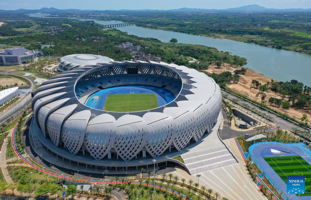 An aerial drone photo shows a sports center in Qionghai City, south China's Hainan Province, March 19, 2026. The Boao Forum for Asia has been empowering the city's overall development for 25 years since its inception in 2001. (Xinhua/Guo Cheng)
