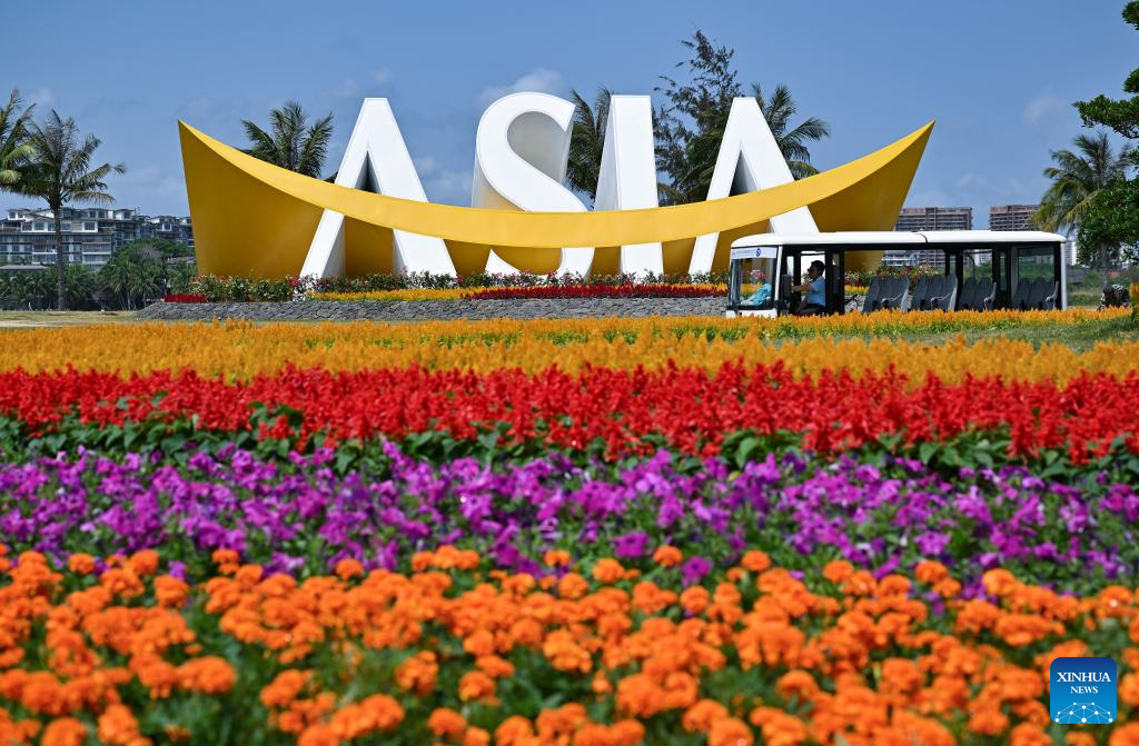A themed installation for the Boao Forum for Asia Annual Conference 2026 is pictured in Boao Town, Qionghai City, south China's Hainan Province, March 18, 2026. The Boao Forum for Asia has been empowering the city's overall development for 25 years since its inception in 2001. (Xinhua/Guo Cheng)