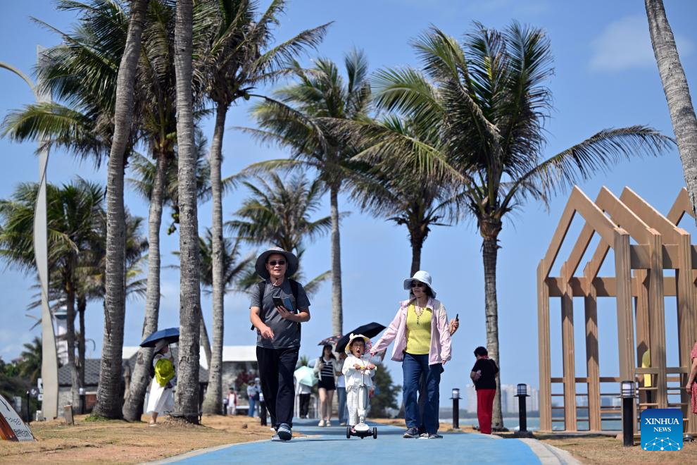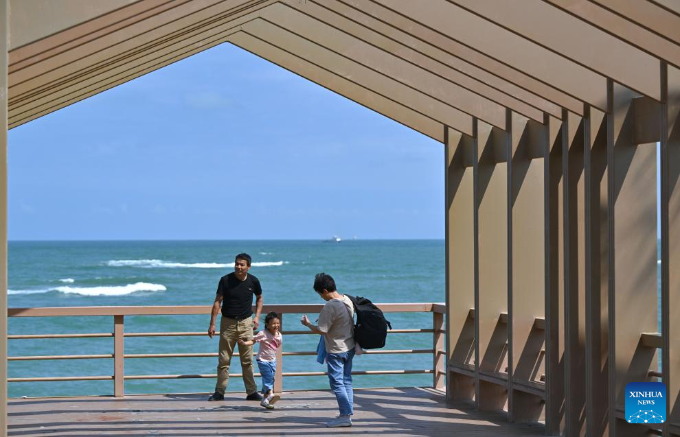 Tourists enjoy themselves by the seaside in Boao Town, Qionghai City, south China's Hainan Province, March 18, 2026. The Boao Forum for Asia has been empowering the city's overall development for 25 years since its inception in 2001. (Xinhua/Guo Cheng)