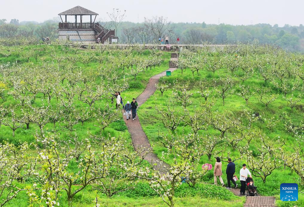 Tourists enjoy spring time at a park in Shijiazhuang, north China's Hebei Province, March 31, 2026. (Photo by Liang Zidong/Xinhua)