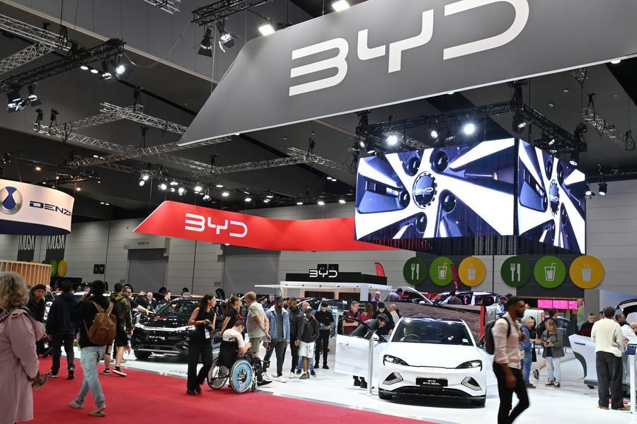 People visit the BYD stand during the 2026 Melbourne Motor Show in Melbourne, Australia, April 10, 2026. (Xinhua/Xu Haijing)
