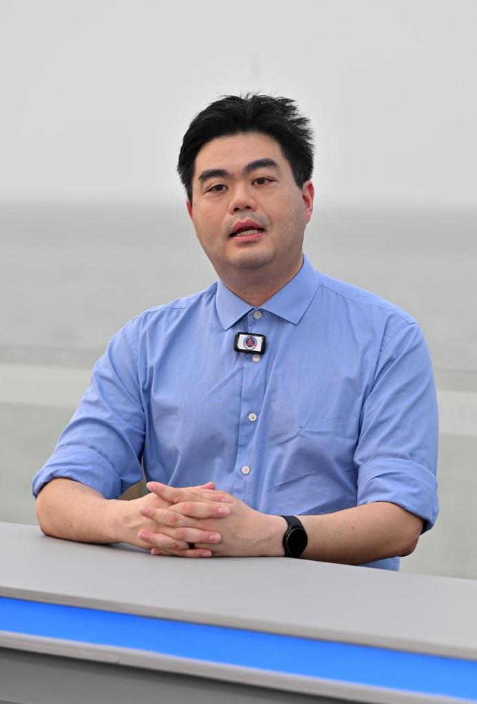 Tang Xifeng, vice president of Manycore Tech, a Hangzhou-based leading spatial intelligence service provider, speaks at the recording site of the 30th episode of the China Economic Roundtable, an all-media talk show hosted by Xinhua News Agency. (Xinhua/Guo Cheng)